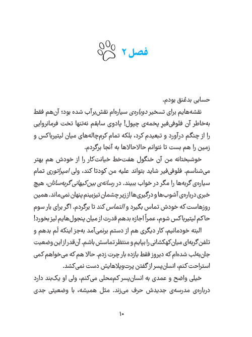 3)من از این کتاب خیلی خوشم آمد، چون گربهی داستان یکجورهایی شبیه گربهی خودم بود. امیدوارم پیام من را بخوانید، کتاب را بخرید و مثل من از خواندن کتاب لذت ببرید.