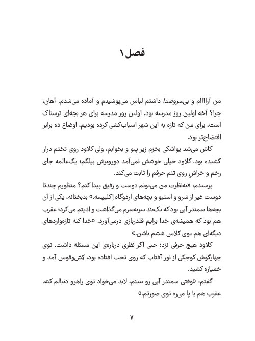 4)رابطهی کلاود و انسانَش(پسر داستان) واقعاً بامزه است. او با حرفهایی که نسبت به زمینیها به زبان میآورد و نقشههایی که میکشد، کاری میکند که نتوانید کتاب را زمین بگذارید.