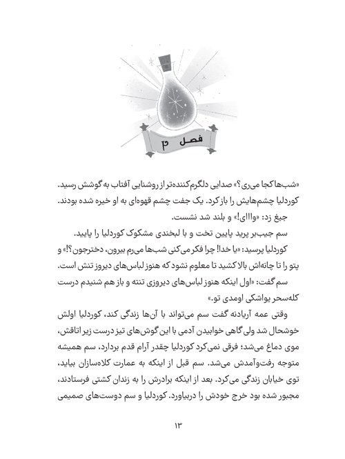 کتاب اول بیشتر دربارهی انگیزهی کوردلیا برای یافتن پدرش و تلاش برای نجات سازندگان سلطنتی است. کتاب دوم بیشتر به آموزش دنیای جادویی میپردازد، اما همچنان موضوع اصلی خانواده، دوستی و انجام کار درست است. حلقهی دوستان کوردلیا در این کتاب بیشتر میشود و کتاب یک رستگاری بزرگ هم برای خوانندگان دارد. خواندن این کتاب را به کودکان و والدین پیشنهاد میکنم.