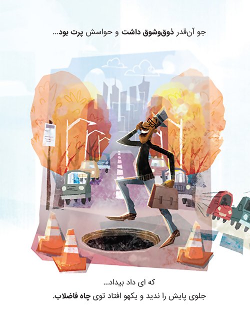 به رویایش برسد که یک دفعه افتاد توی چاه فاضلاب. بعد خودش را شبیه روح دید که میرفت به سمت یک نور بزرگ. جو آنجا با روحهای دیگری آشنا شد.
