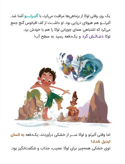 یک روز لوکا و دوستش به خشکی رفتند و یکدفعه به انسان تبدیل شدند. او آرزو داشت توی مسابقه شرکت کند و با جایزهاش موتور وِسپا بخرد. وسط مسابقه باران بارید و لوکا به هیولا تبدیل شد!
