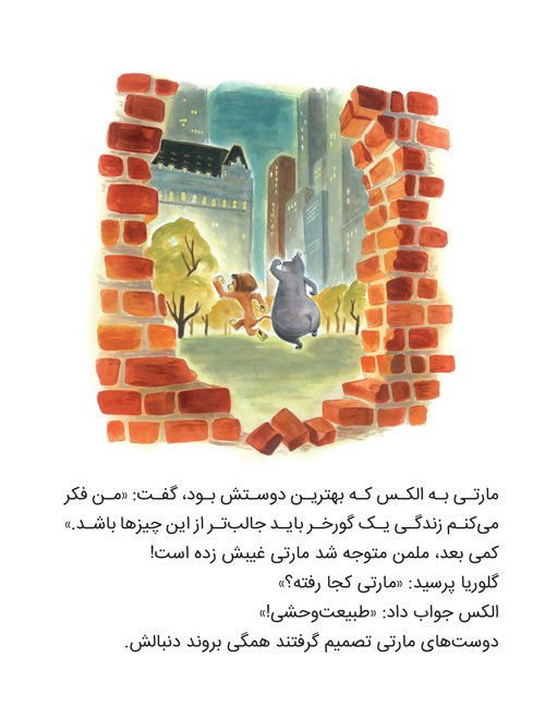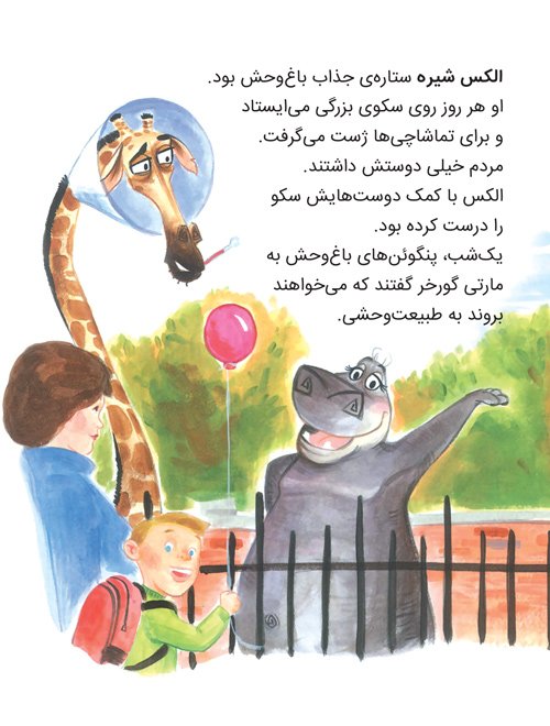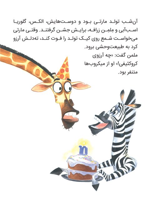 الکس شیر جذاب باغ وحش بود و مردم خیلی دوستش داشتند. پنگوئن های باغ وحش به مارتی گورخره گفتند دلشان می خواهد به طبیعت وحشی بروند. مارتی هم شب تولدش...