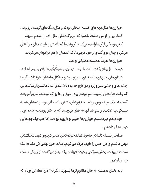 ویلودین بههمراه خرس مگسخوارش، دووزوو، توی جنگل پرسه میزند. او عاشق جیغزنهای بنفش است؛ همانها که مثل خروسهای مجنون در دل شب جیغوداد میکنند. فقط حواستان باشد هیچوقت سربهسر یک جیغزن نگذارید و او را عصبانی نکنید، با دُم خارخاری و بوی گندش بلایی سرتان میآورد آن سرش ناپیدا.